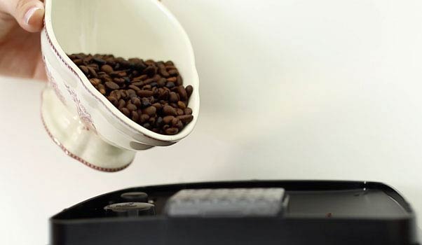 1- Llenado del depósito de agua y del recipiente de granos de café.