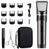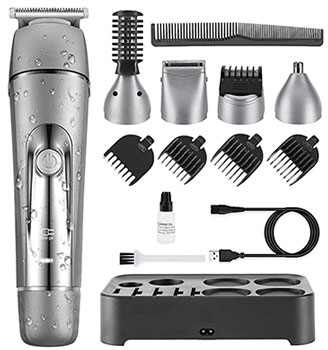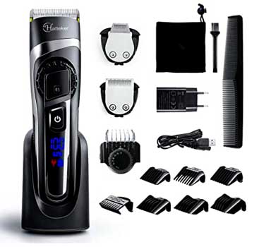 Este cortapelos es una máquina 10 en 1 con 5 accesorios para cubrir todas las necesidades de afeitado. Corta tanto barba como cabello como pelo de las orejas, y tiene una pantalla LED inteligente que le avisa cuando se le acaba la batería. Las cuchillas son de acero inoxidable y cuenta con varias modalidades de peines guía para ajustar el cortapelos a su gusto y necesidad, además es fácil de cargar, ya que puede estar cargando y usando al mismo tiempo, ya sea para el uso doméstico o para el uso profesional.