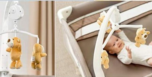 Su increíble diseño ofrece un sistema de guardado en una sola pieza, viene bajo una presentación de colores muy tenues, distintos estampados, una base de madera con colchoneta de goma espuma (simulando un colchón), ruedas con freno y tres divertidos juguetes móviles en su arco superior.