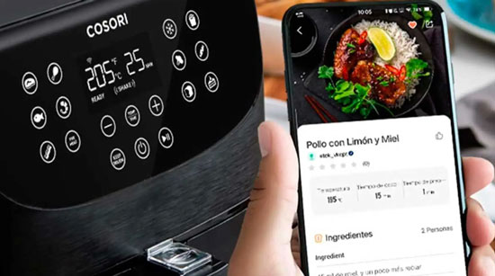 Adicionalmente, las freidoras sin aceite, como la Cosori Smart, han desarrollado la tecnología de conectarse (Wifi o bluetooth) a dispositivos móviles o tablets mediante aplicaciones.