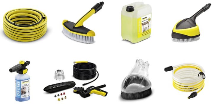 Esta edición incluye un set de accesorios para limpiar cada lugar en casa. Un Cepillo para la terraza, pistola de alta presión, boquillas con distintas aperturas y un filtro de agua.