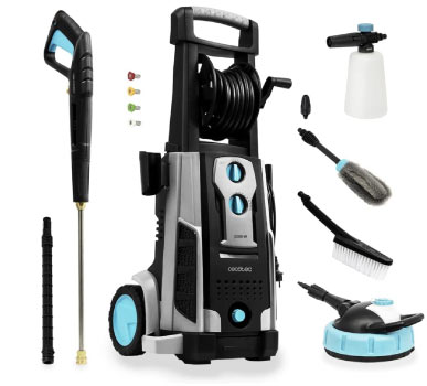 - Cecotec: una marca con amplia trayectoria que se ha encargado de optimizar sus productos con tecnología patentada. Están a la cabeza en las listas de ventas porque sus equipos son sofisticados y los puedes comprar a bajo precio. En el mundo de las hidrolimpiadoras ofrecen equipos que funcionan a potencias de 2400 W lo que se traduce a más de 150 bares de presión, para conseguir superficies extralimpias.