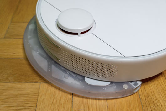 Para realizar el proceso de fregado, los robots aspiradores vienen equipados con un tanque de agua o una mopa o paño que se emplea para fregar el suelo mientras se realiza el proceso. El tanque de agua también se puede rellenar con agua y detergente específico.