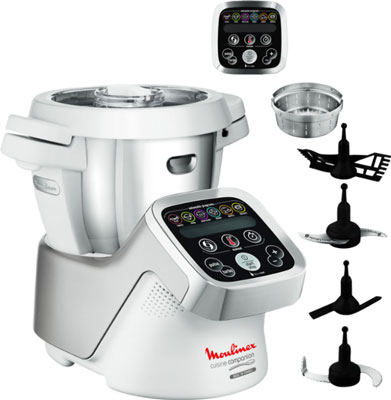 Cuenta con 6 accesorios que la acompañan, una cuchilla multihojas, una cuchilla para amasar o moler, una batidora, una mezcladora, un cestillo vapor y tapón base tamaño XL. Es además compatible con otros 3 accesorios, una picadora, una vaporera y un minibol de cocción para bebés.